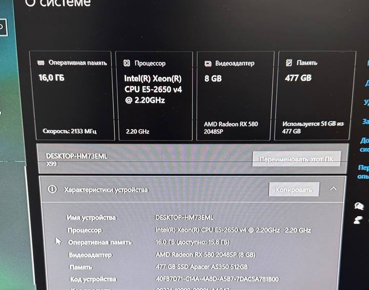 Процессор: AIntel(R) Xeon(R) CPU E5-2650 V4